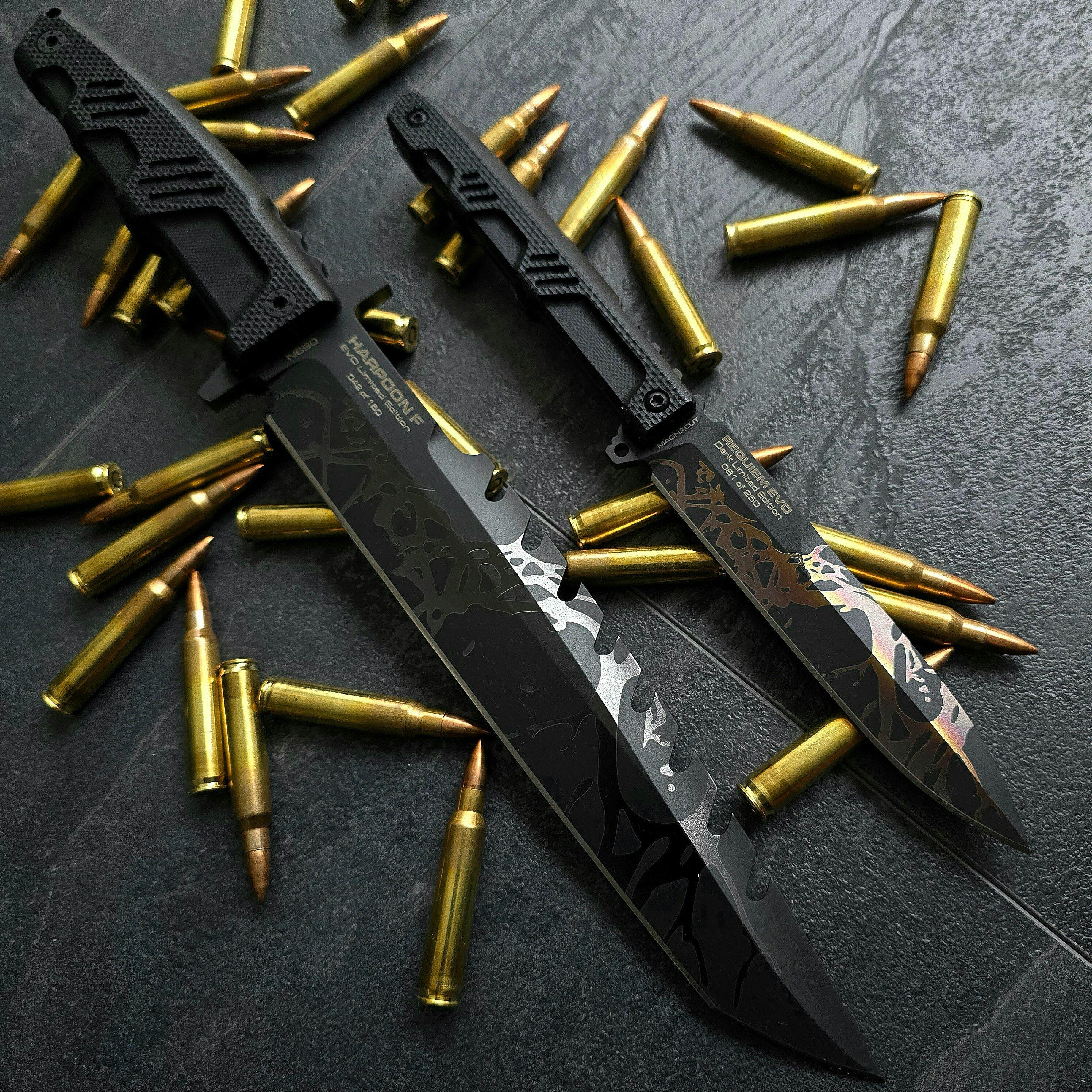 The functional denting on the spine allows the Harpoon to be used as a harpoon when mounted on a pole.