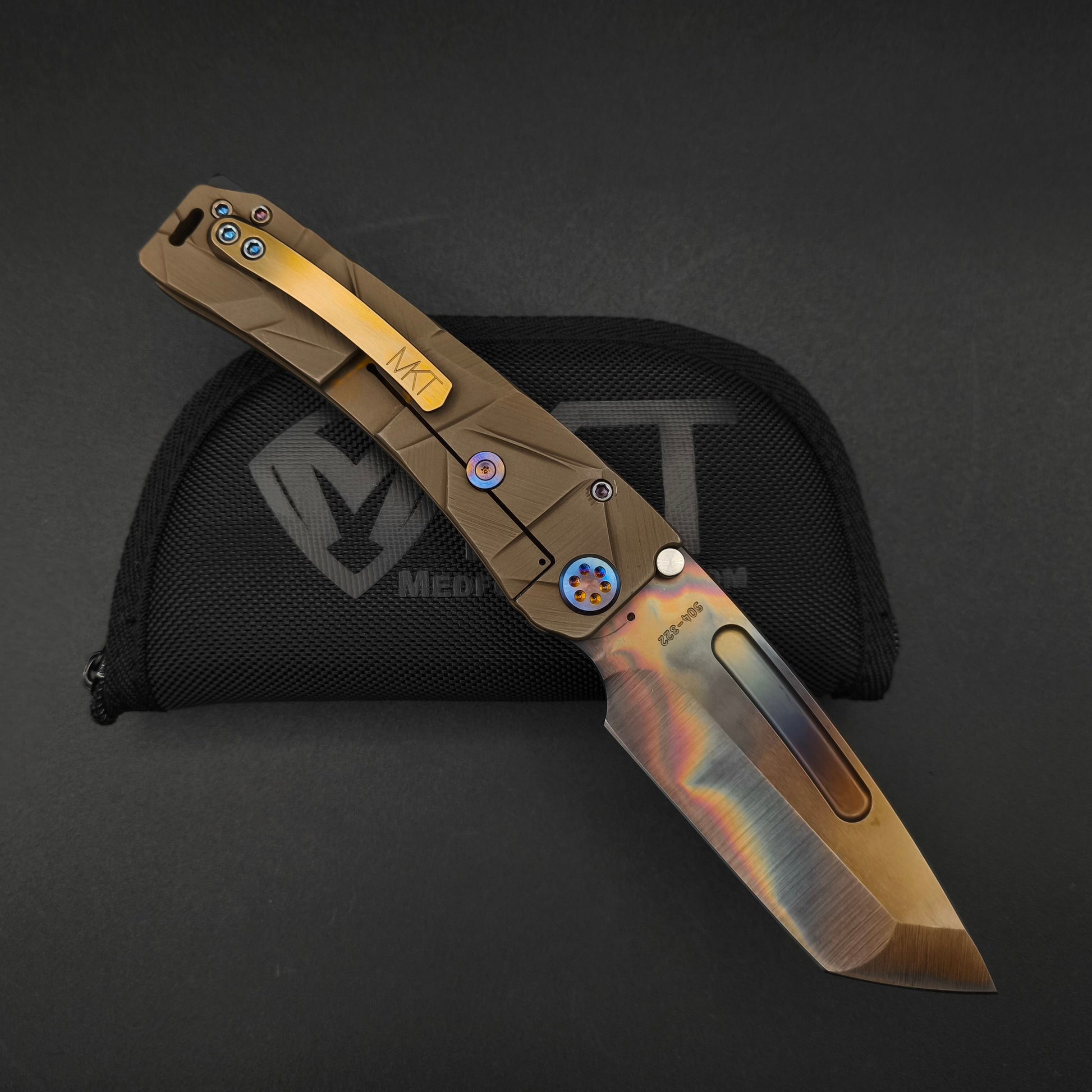 The Medford Marauder H with Framelock, Vulcan Tanto blade and Stained Glass Brushed Bronze handle, Flamed Hardware and a Brushed Bronze Clip. The ultimate Medford in an amazing version. Only available through authorized dealers.