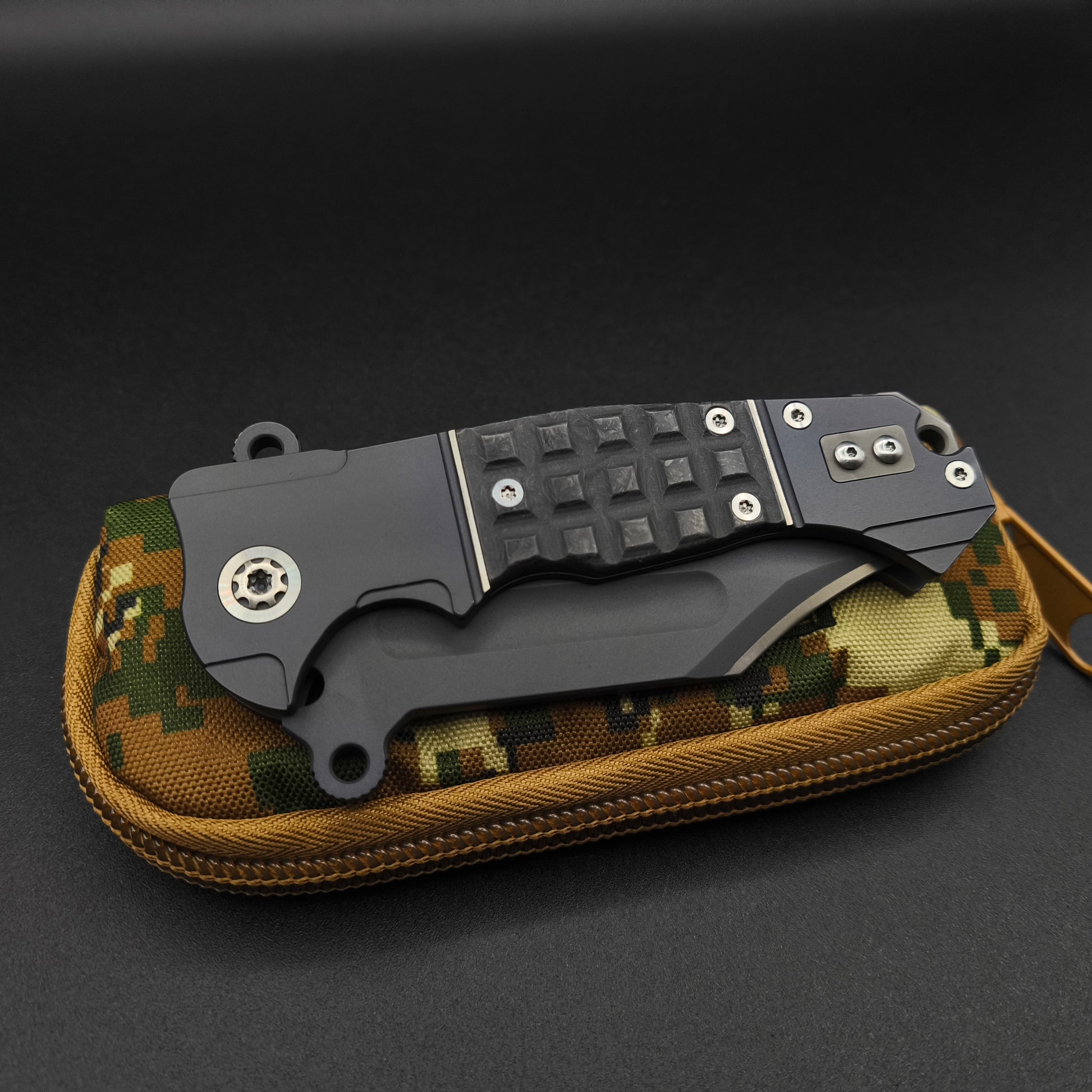 Das Badlands Bowie. Geiles Kalgard finish und Carbon Fiber Inlays. Die coole Tasche gibt es dazu.