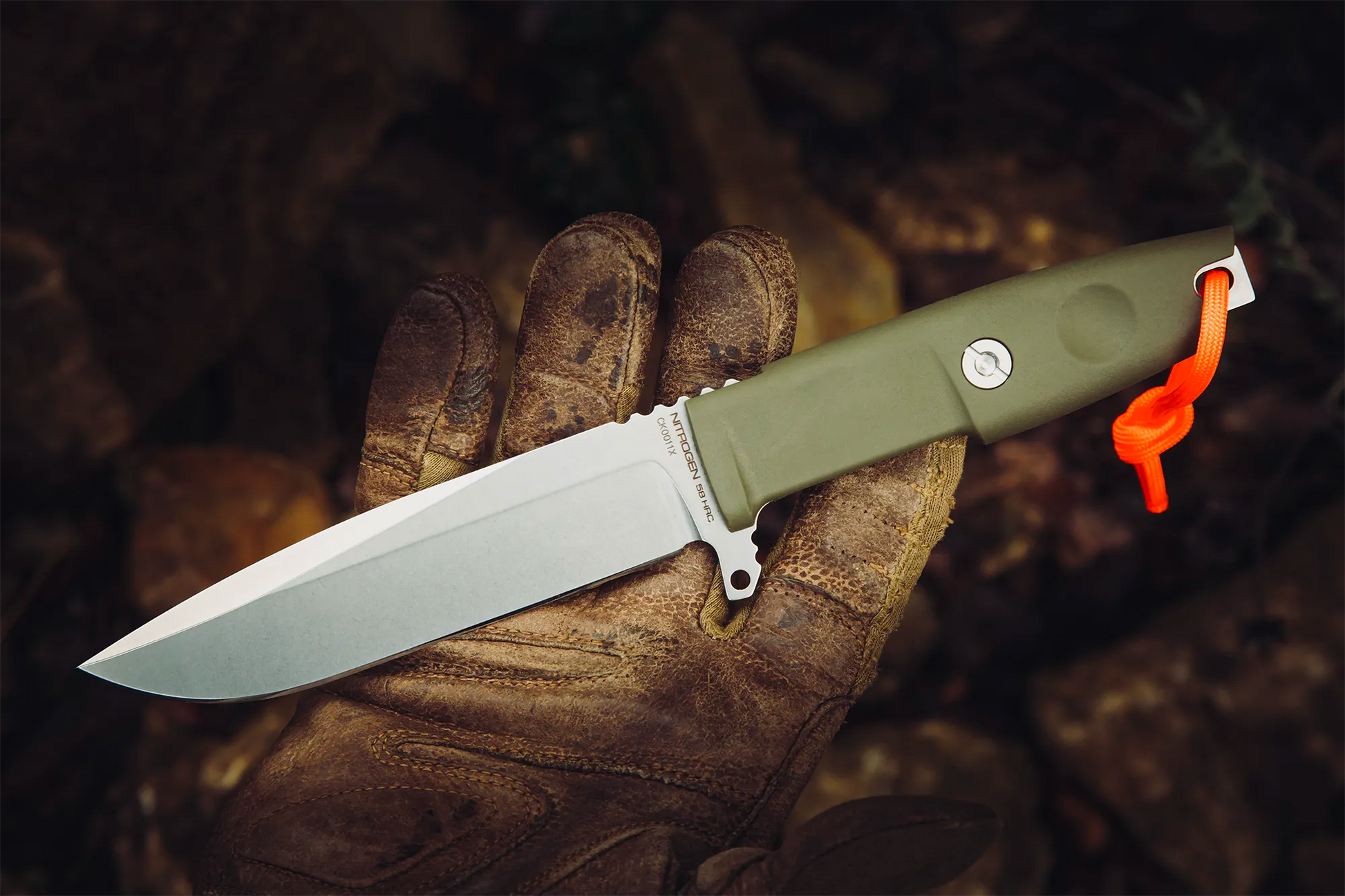 Das F.O.K. Nitrogen Outdoor ist ein Messer mit feststehender Klinge für den echten Outdoor-Einsatz, das für Arbeiten im Freien entwickelt wurde, bei denen Gewicht, Größe und Zuverlässigkeit entscheidend sind. Es basiert auf der Struktur des Modells FOLGORE und wurde speziell für den Outdoor-Einsatz neu interpretiert, mit Materialien und Oberflächen, die für den Wald, das Feld und längere Outdoor-Aktivitäten optimiert sind.