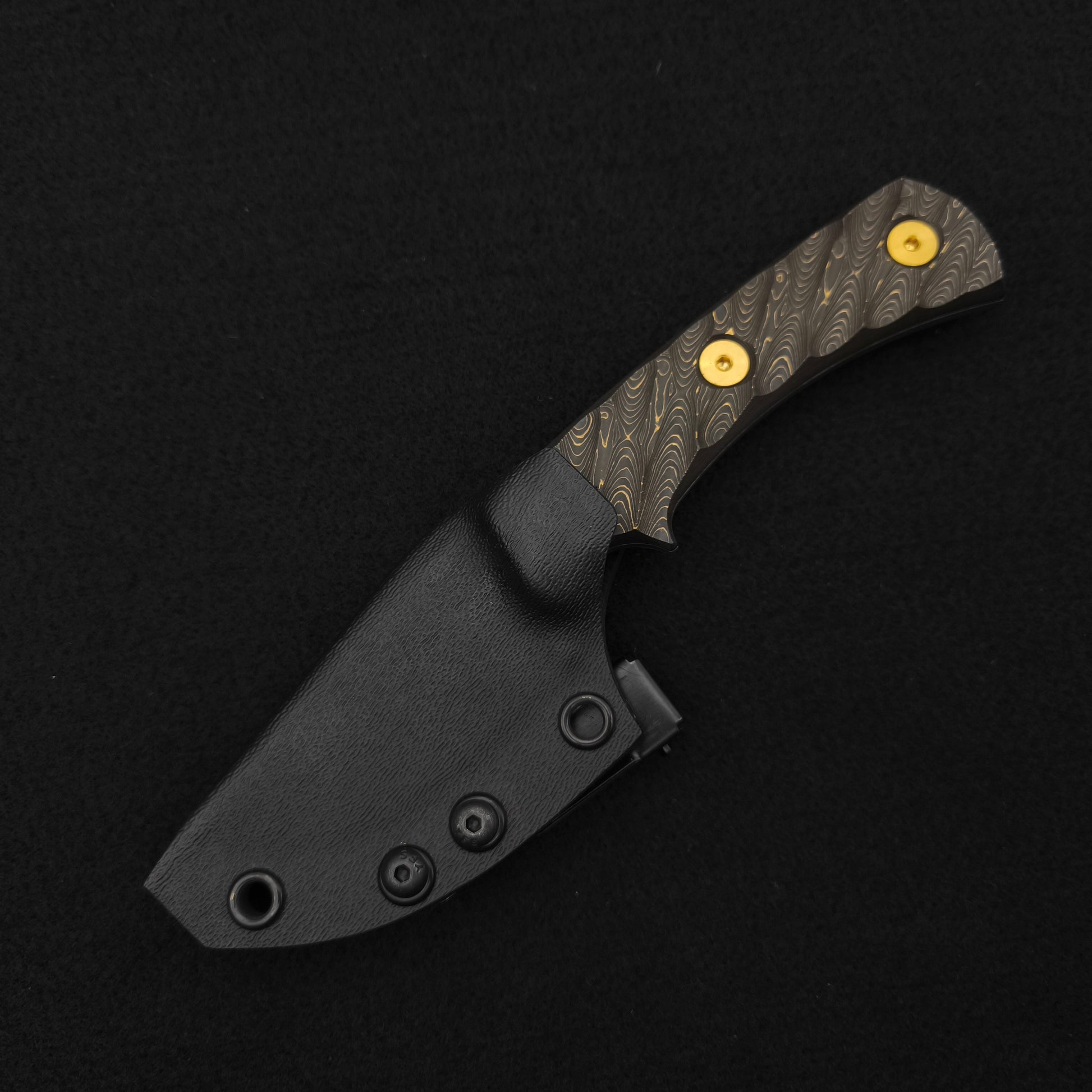 Half Face Beef Harpoon Back Country - Gold Camo Carbon, Brass Allen Bolts, Textured Grip. Mit Kydex Scheide und Clip.