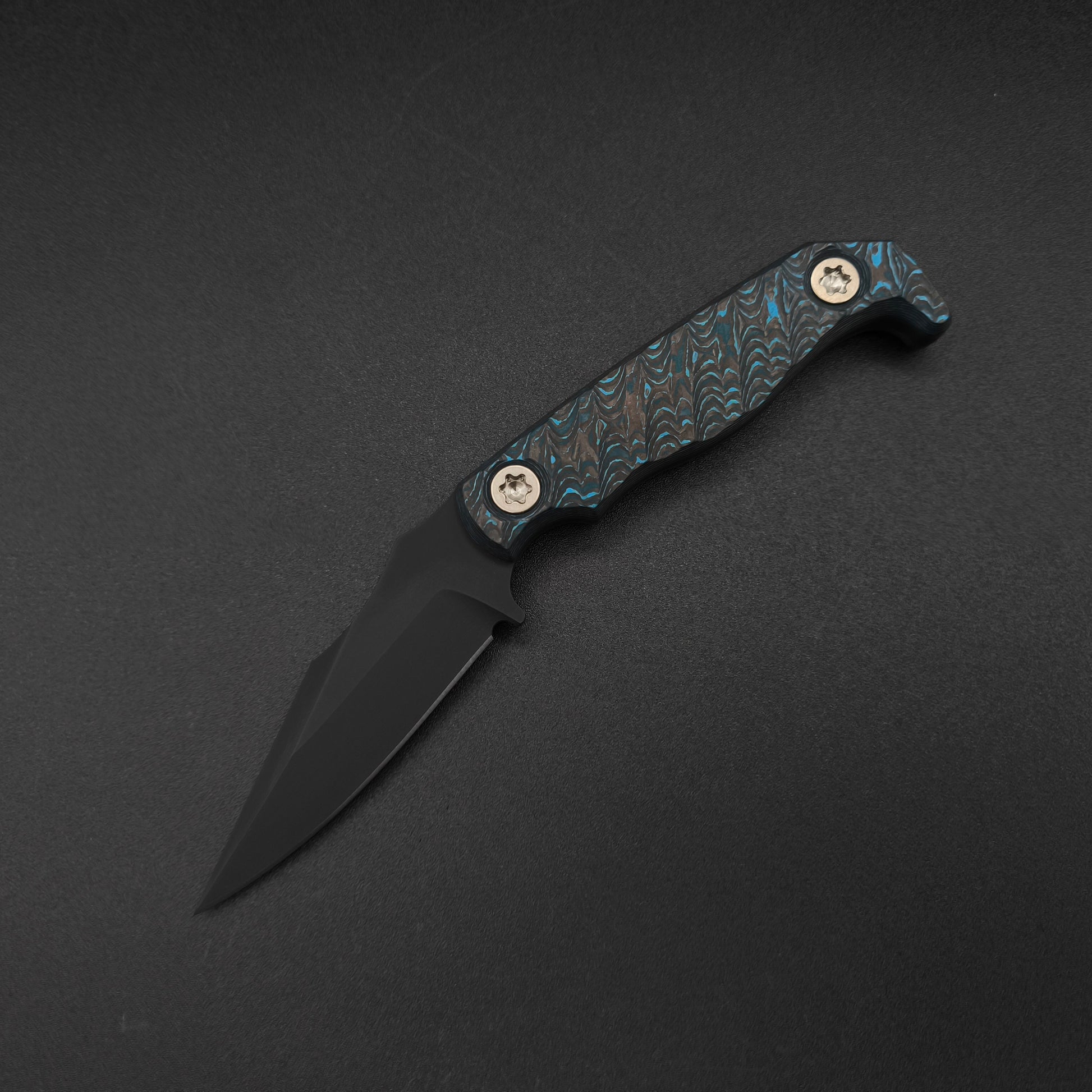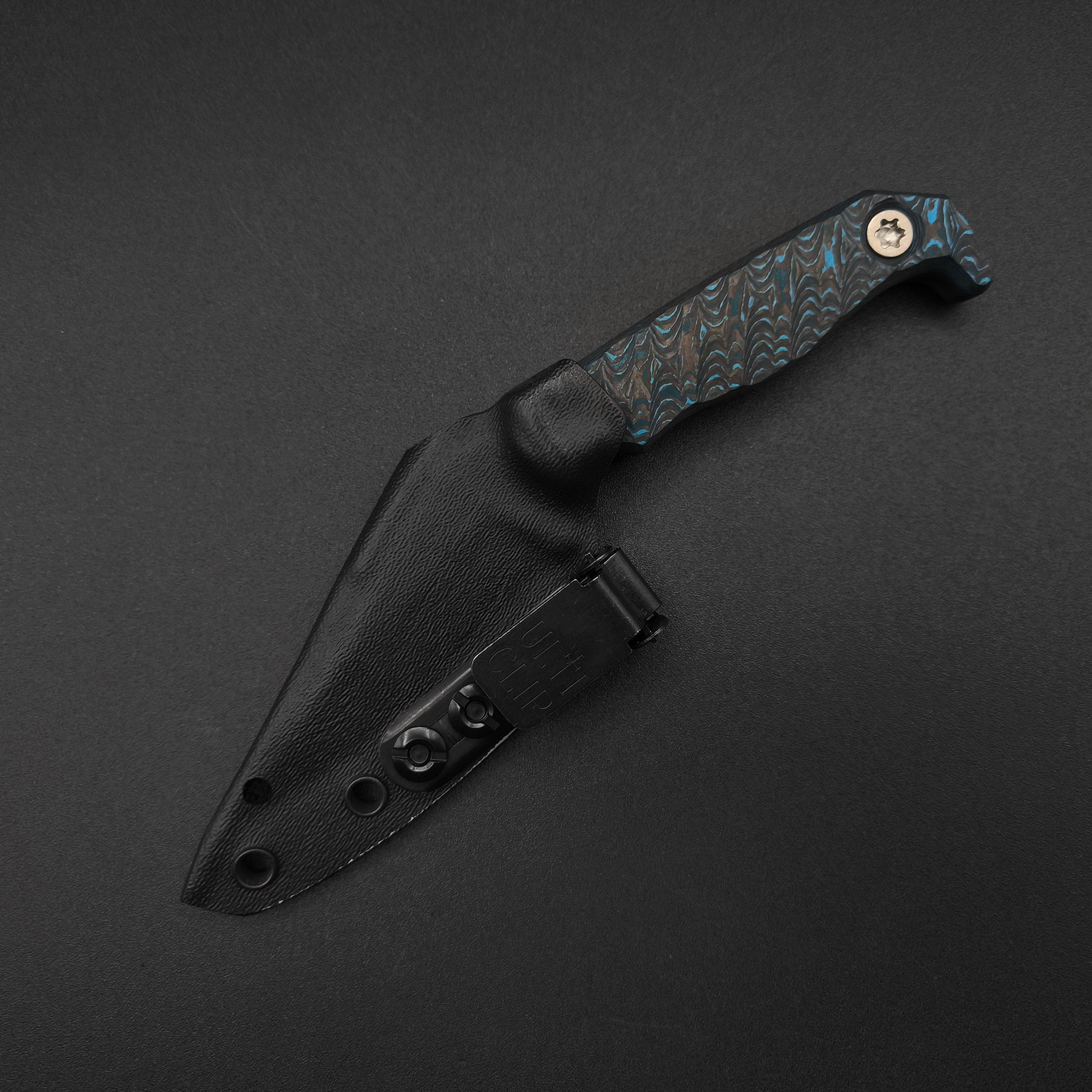 Half Face Blades Custom EDC - Artic Storm Carbon Fiber, Armor Black Cerakote, Ti Torx, Iron Grip. Mit Kydex Scheide und Clip.