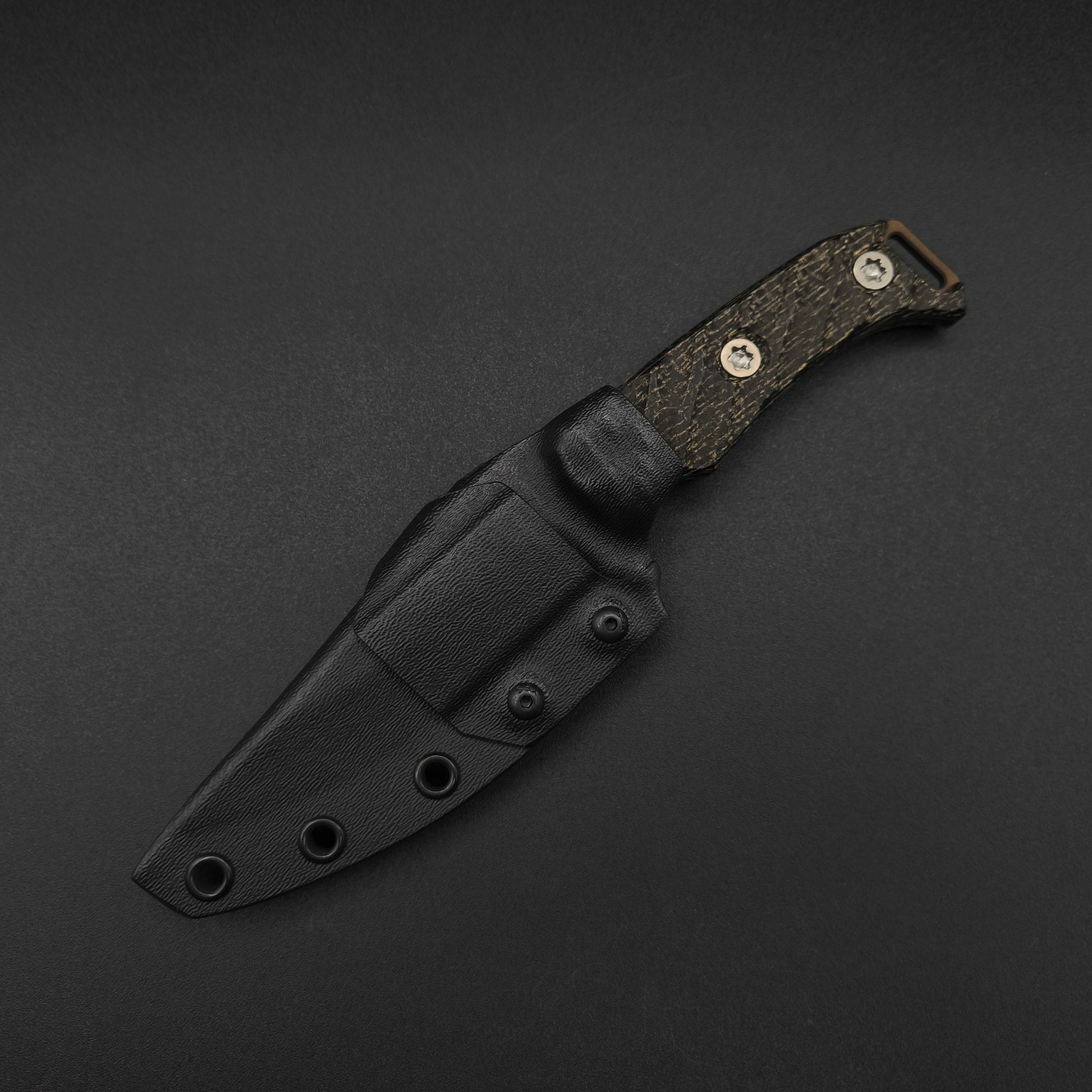 Tosahwi - Black Burlap Micarta, Midnight Bronze Cerakote, Ti Torx Bolts, Iron Grip. Mit Kydex Scheide und Clip.