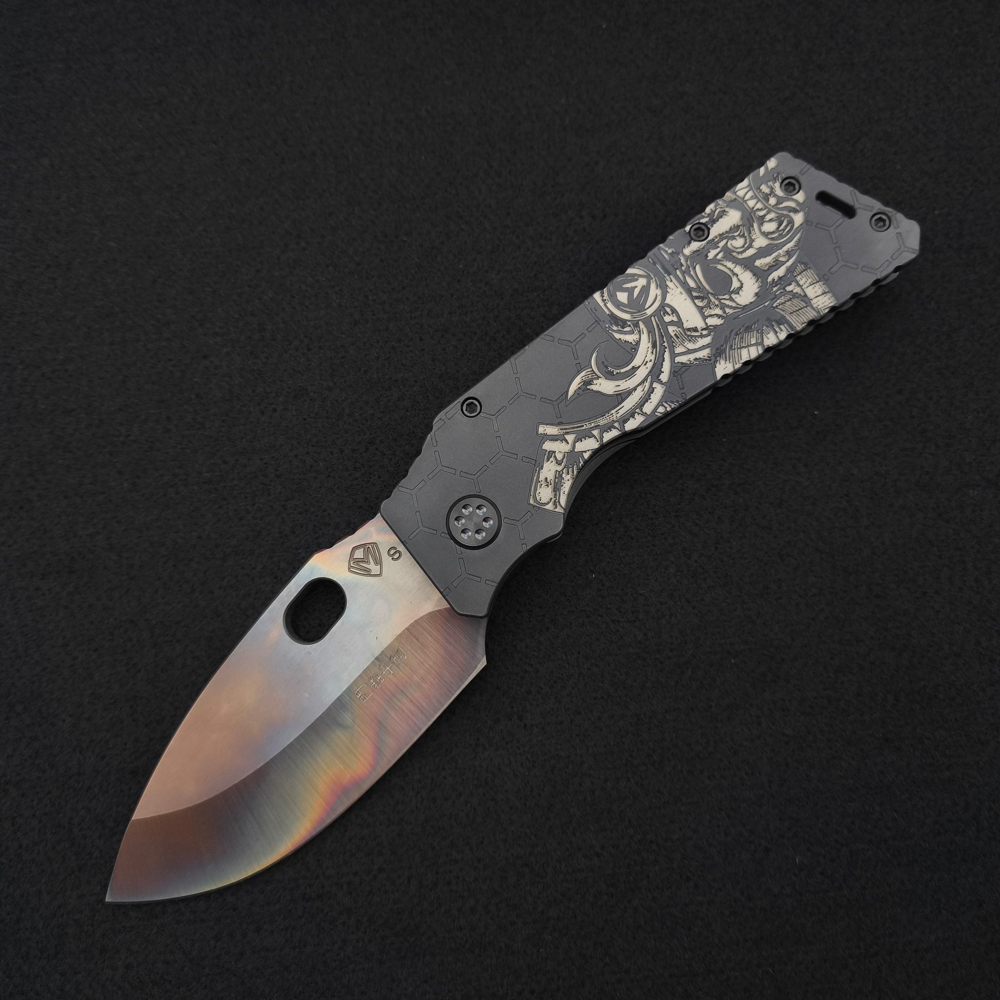 Das Medford Fat Daddy, der Name ist Programm! Vulcan CPM S35VN Klinge and black and white Samurai Armor finish. Ein echtes Monster! Eine echte Rarität. Inkl. Pouch.